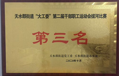 7410022020年10月29日至30日,天水郡街道辦事處“大工委”第二屆干部職工運(yùn)動會在天水師范學(xué)院舉行。天水郡街道辦事處轄區(qū)18個單位組隊參加了各項賽事。運(yùn)動會設(shè)乒乓球團(tuán)體、羽毛球團(tuán)體、籃球和拔河四個項目。6913工會在保證企業(yè)生產(chǎn)經(jīng)營正常進(jìn)行的情況下精心組織安排參加了全部項目的比賽,參賽隊員在比賽中充分發(fā)揚(yáng)“友誼第一,比賽第二”的體育精神,特別是在拔河比賽中隊員們能夠步調(diào)一致、齊心發(fā)力,在小組賽中一路高歌猛進(jìn),以全勝小組第一名出線,決賽因連續(xù)六局對抗,經(jīng)過積極努力獲得了拔河比賽的第三名。